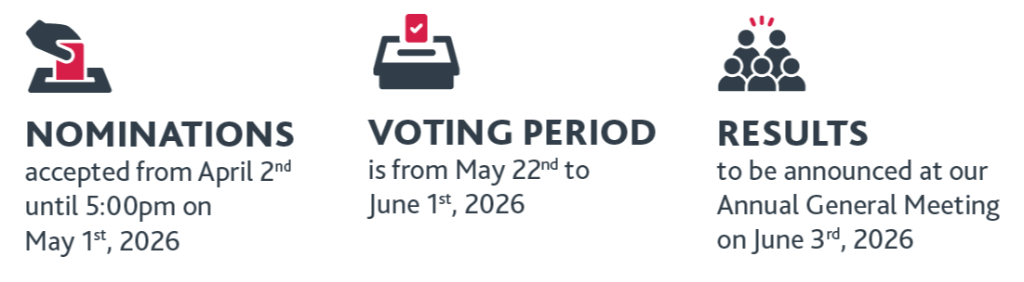 Our election will be held from May 22nd to June 1st, with the results announced at our Annual General Meeting on June 3rd.